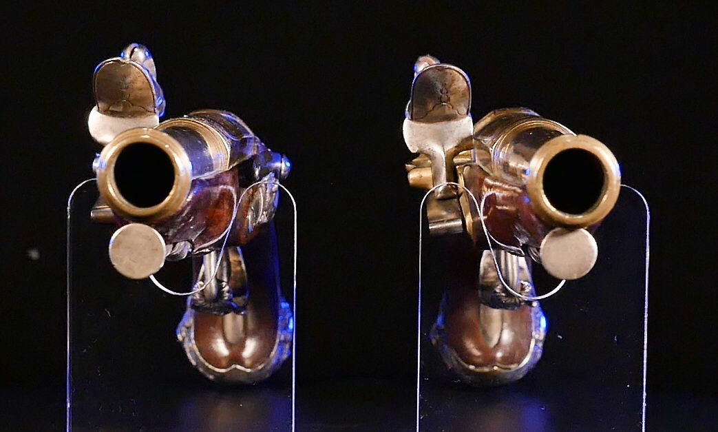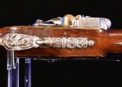 These are a magnificent and historic matching pair of flintlock pistols and a rarity among collectors. Until 2019, they had resided in private collections in France and Spain. This pair would take centre-place today in the collector’s portfolio.