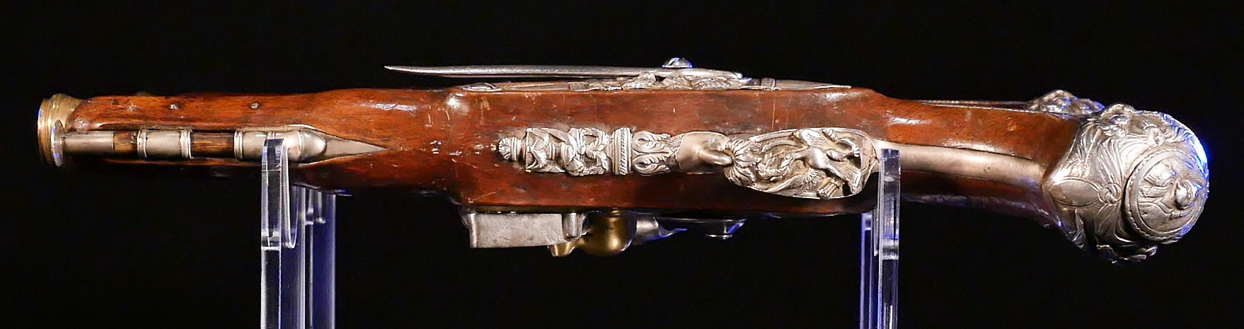 The maker is renowned French gunsmith Cassignard of Nantes, whose name is engraved on each pistol’s lock. Cassignard also made fusil flintlock rifles, many of which found their way to American revolutionaries fighting the British, in 1776. One such fusil by Cassignard was carried by Lt Daniel Allen, an officer who
