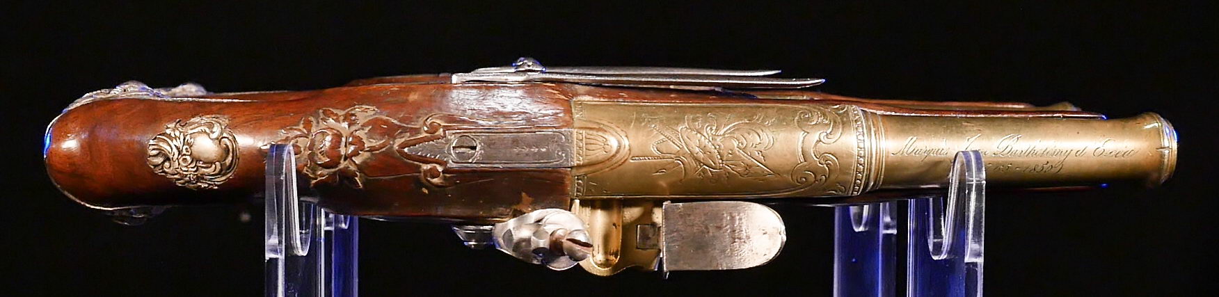 They were inscribed after his death and possibly by his son, General Antoine-Achille d’Exea. The pistols may also have accompanied General d’Exea to the Spanish campaign or to Greece during the expedition of Moree in 1828.